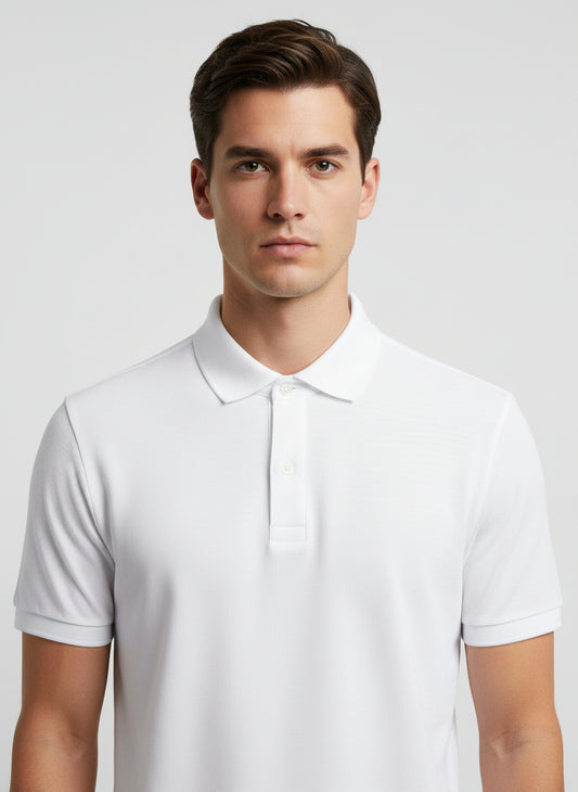 White Double Jersey Half Sleeve Polo Shirt