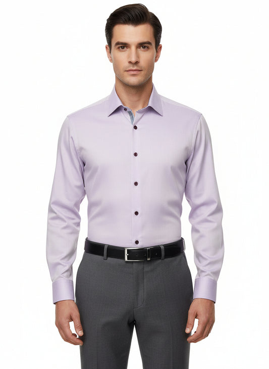 LILAC MICRO TWILL DRESS SHIRT WITH CONTRASTING BUTTONS, COLLAR AND CUFF