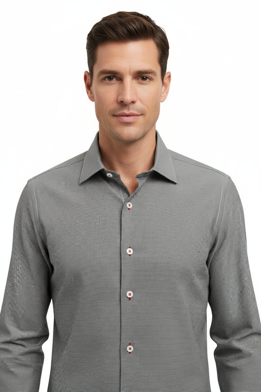 Black Micro Houndstooth Non Iron Egyptian Cotton Dress Shirt