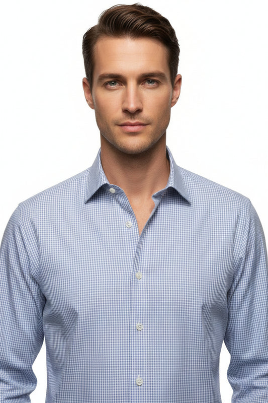 BLUE GINGHAM EGYPTIAN COTTON NON IRON DRESS SHIRT