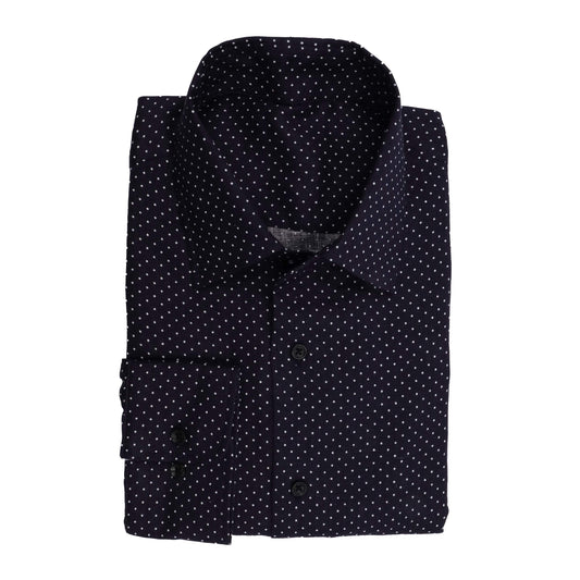 Linen Sports Shirt White Polka Dots on Dark Navy background