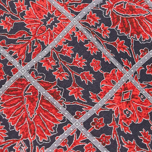BLACK ON RED PETALS WITH SILVER OVERCHECK SILK TIE