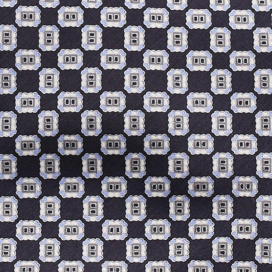 SILVER GEOMETRIC DESIGN ON BLACK SILK TIE