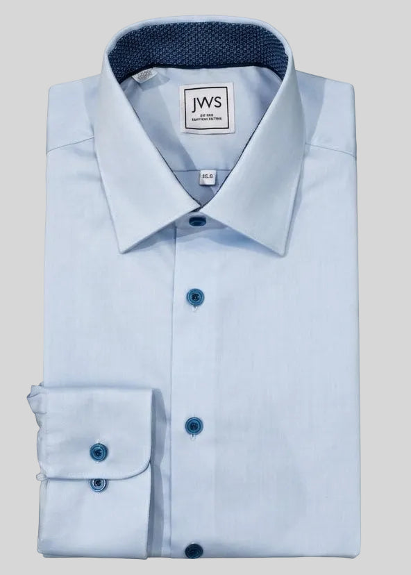 SKY BLUE MICRO TWILL DRESS SHIRT WITH CONTRASTING BUTTONS, COLLAR AND CUFF